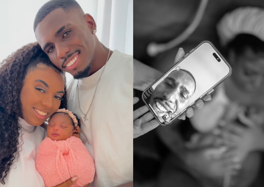 Evertton Araújo, do Flamengo, celebra nascimento da filha após assistir parto por videochamada: ‘Amo vocês’