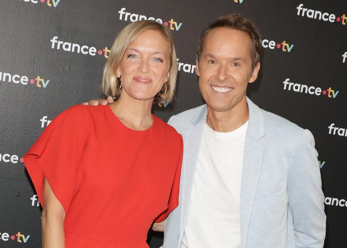 Maya Lauqué et Damien Thévenot lors de la conférence de presse de rentrée de France Télévisions à Paris, France, le 4 septembre 2024. COADIC GUIREC / BESTIMAGE