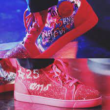 Devant l’objectif, il aligne une dizaine de boîtes soigneusement empilées. À l’intérieur, des trésors colorés : des souliers pointus incrustés de strass, des baskets aux motifs psychédéliques, des mocassins vernis rouge vif, et même des paires agrémentées de piques métalliques. « J’adore les chaussures compliquées », confie-t-il avec un sourire malicieux. Une phrase simple, mais qui en dit long sur une passion qui dépasse le simple goût pour la mode.