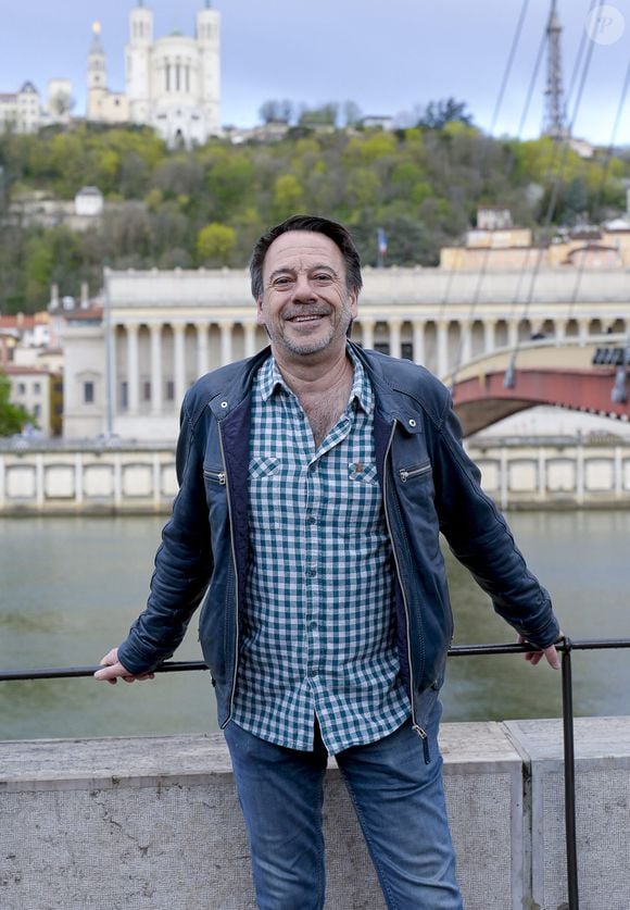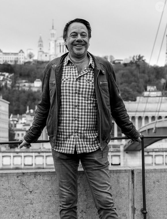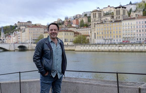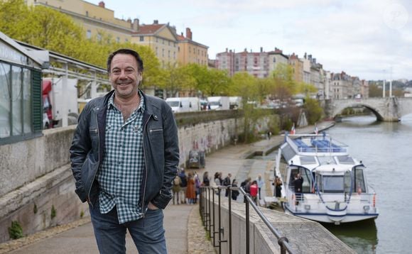 Michel Bussi sur le quai de Saône face à la coline de Fourvière avant d’embarquer sur un bâteau lyonnais. Croisière littéraire sur le Rhône et la Saône avec Michel Bussi et Nathalie Dupuis 19ème édition du festival Quais du polar à Lyon, France, le 1er avril 2023. © Sandrine Thesillat/Panoramic/bestimage