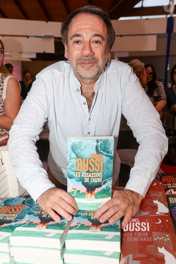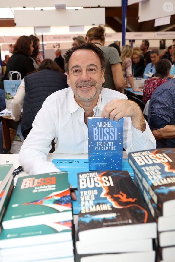 Le 14 août 2025, il a publié son nouveau thriller “Les ombres du monde”, mêlant suspense, complot et événements historiques, tout en continuant à mener une vie simple et discrète. Michel Bussi, à la Halle Georges Brassens de Brive-la-Gaillarde, le 8 novembre 2024. Foire du Livre de Brive 2024. © Jean-Marc Lhomer / Bestimage