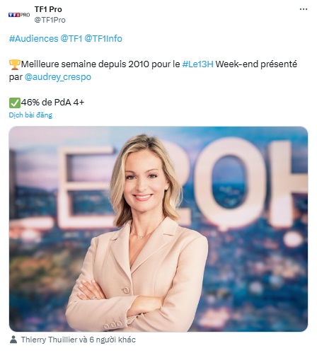 Presque un mois après la mort de son époux Thierry Ardisson, Audrey Crespo-Mara a battu un record vieux de 15 ans au JT du week-end de TF1.