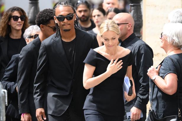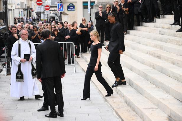 Audrey Crespo-Mara et son fils Sekou Mara assistant aux funérailles de Thierry Ardisson à l’église Saint-Roch à Paris, France, le 17 juillet 2025. – Blondet-Papixs/ABACA