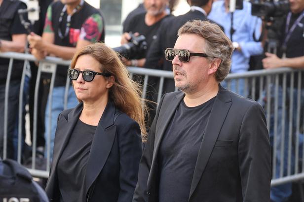Jean-Michel Blanquer et sa femme Anna Cabana assistant aux funérailles de Thierry Ardisson à l’église Saint-Roch à Paris, France, le 17 juillet 2025. – Blondet-Papixs/ABACA