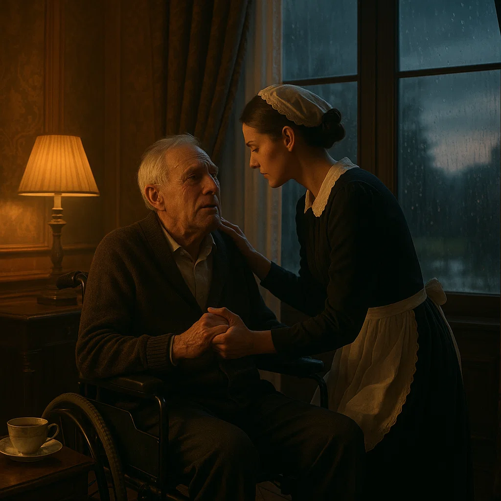 Arthur vivait dans le silence, où résonnaient encore les échos des rires d’antan. Son fauteuil roulant vide roulait sur le sol de marbre, témoin d’une joie oubliée. Chaque tic-tac d’une horloge lui rappelait un passé qu’il ne pouvait plus revivre. Jadis, il avait bâti des empires. Désormais, il ne pouvait plus soulever son âme. Ses serviteurs craignaient son agressivité. Personne ne voyait les larmes qui se cachaient derrière son orgueil jusqu’à ce qu’un jour, une nouvelle servante fasse irruption dans son monde.