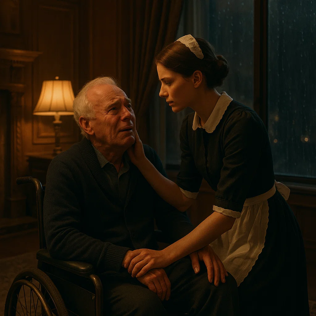 Il ne put retenir ses larmes ni la vérité enfouie depuis des années. Lorsqu’elle s’approcha pour le réconforter, sa voix trembla. « J’ai besoin d’amour. » « Ne bouge pas », murmura-t-il, les yeux brillants. La servante se figea, non par peur, mais par incrédulité, car à cet instant, le riche homme n’était plus son maître. Il était une âme brisée, et elle, la servante, détenait le pouvoir de le guérir ou de le détruire à jamais.