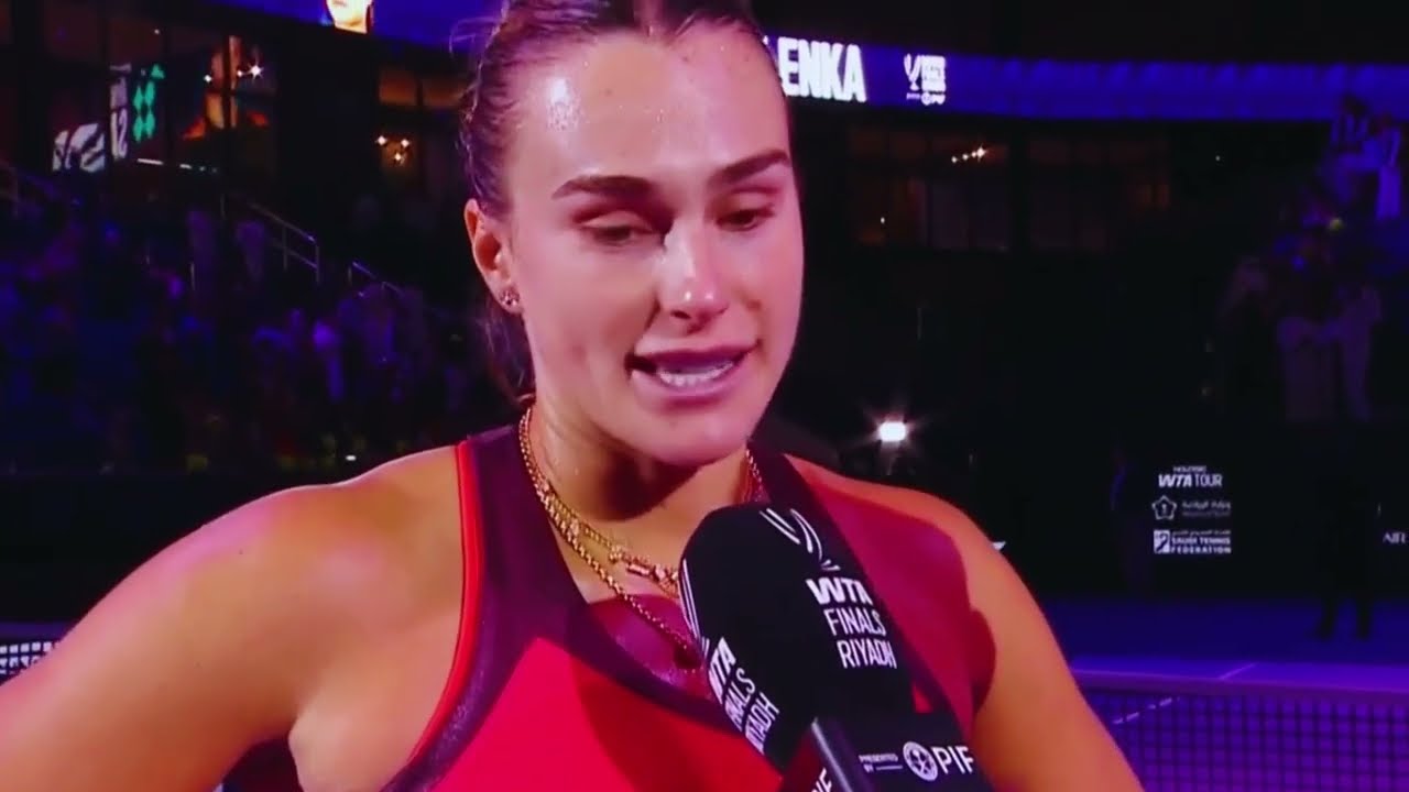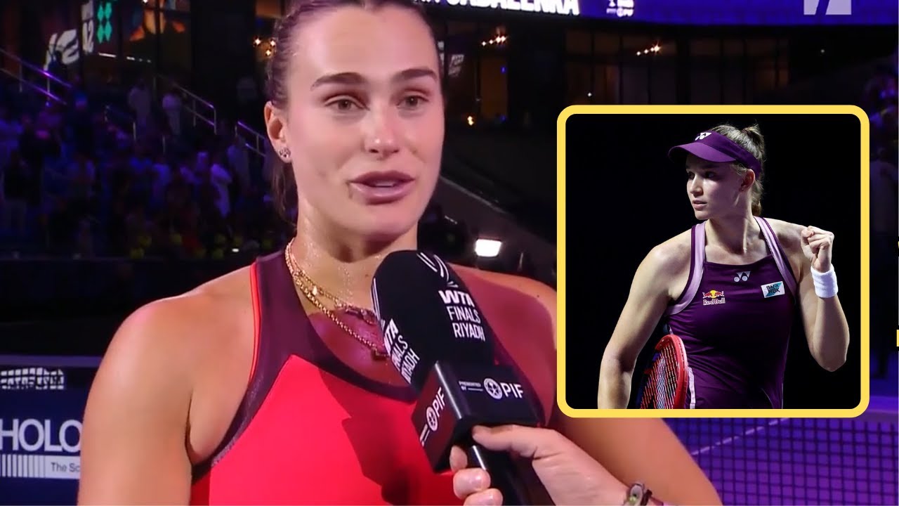 Merci d’être venus. Merci de nous avoir encouragés. Vous êtes formidables. Prochaine adversaire : Elena Rebakina. Vos confrontations directes sont très serrées. Vos styles de jeu sont tellement similaires. Que pensez-vous d’affronter Elena demain ? Oui, ce sera un autre match intense. J’ai l’impression qu’aujourd’hui était une excellente préparation pour Elena et euh, oui, j’ai hâte de tout donner lors du dernier match de la saison et de me battre pour ce magnifique trophée.