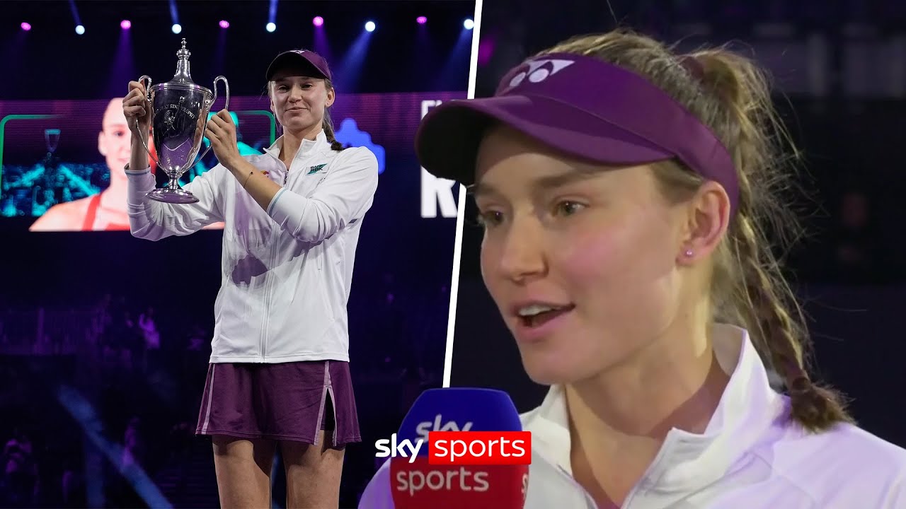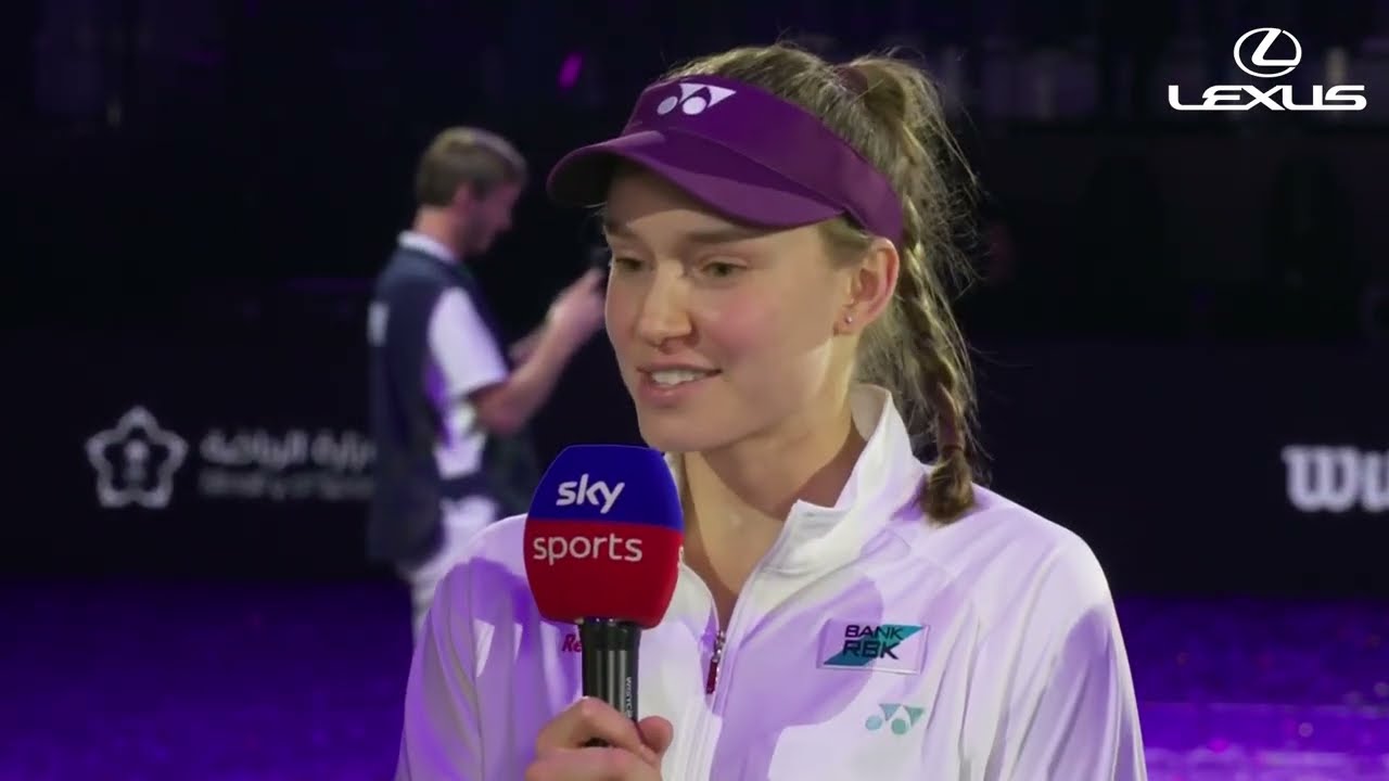 Lexus présente le tennis sur Sky Sports. Elle prend le micro. Voilà. Elle arrive. On va lui donner son capteur. Bravo ! Bravo ! Je te le donne, Elena. Oui. Non. Place-le là. C’est parfait. On s’en occupe, Elena. Waouh ! Félicitations ! Peux-tu nous décrire tes émotions et ce que représente pour toi le titre de championne des finales WTA ?