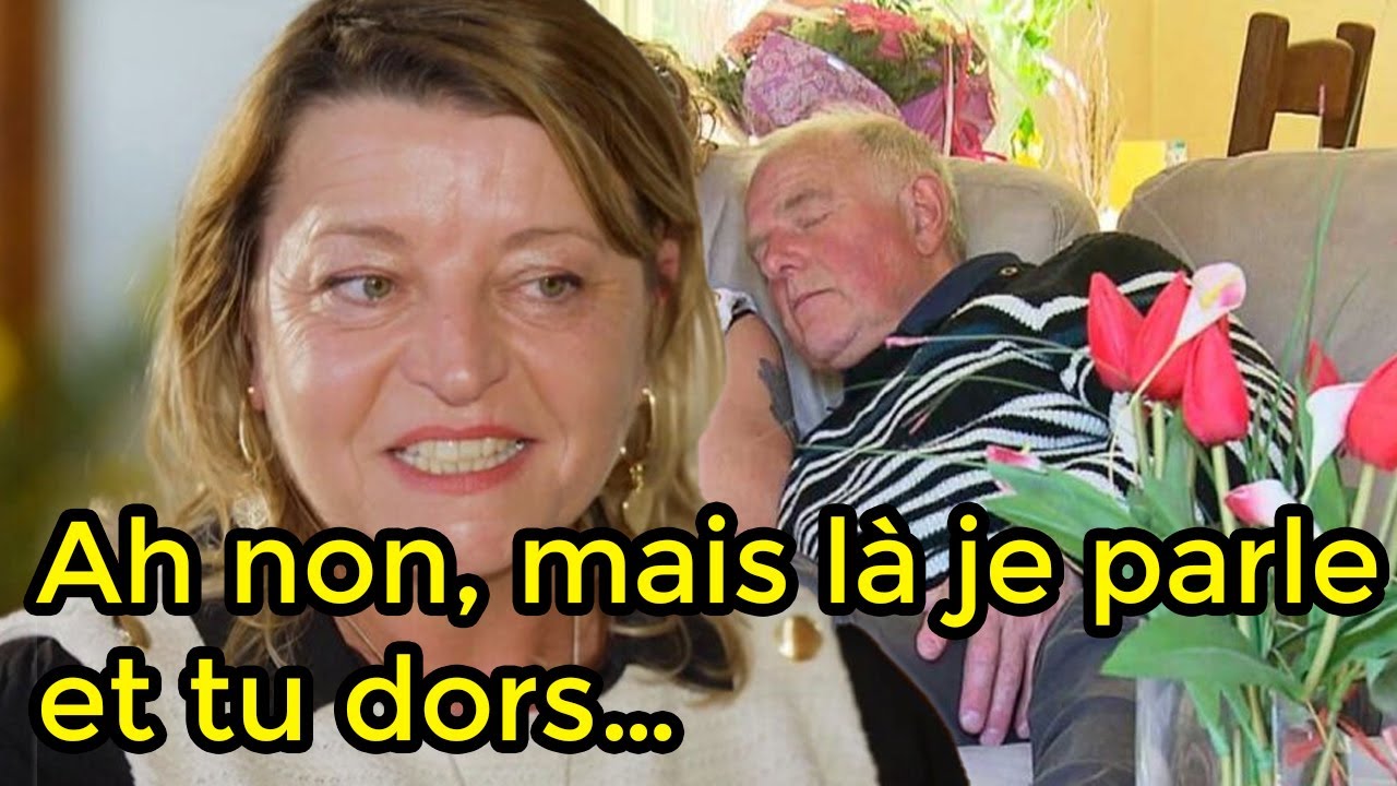 Plus tard dans la journée, les deux tourtereaux rentrent à la ferme. L’ambiance se fait plus cocooning. Installés dans le salon, ils décident de regarder ensemble des photos souvenirs. Isabelle, tout sourire, lui montre des clichés de sa vie, de ses proches, de ses voyages. Jean-Louis, fatigué par la journée et sans doute submergé par l’émotion, peine à garder les yeux ouverts. Ses paupières se ferment doucement, et il finit par s’endormir, la tête légèrement penchée.