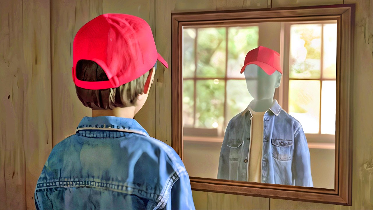 Avant d’aller à l’école, Michel va dans la salle de bain pour se brosser les dents. Mais en se regardant dans le miroir, il est surpris de constater qu’il ne voit que sa robe de chambre et sa brosse à dents. Inquiet, il court jusqu’à un miroir plus grand et confirme qu’il est devenu invisible. À ce moment-là, sa mère entre dans la pièce et ne voit que la robe de chambre jetée par terre sans remarquer sa présence.