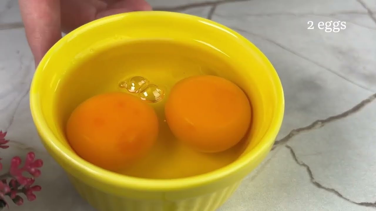 Unire le 2 uova intere e 1 cucchiaino di sale. Sbattere leggermente per amalgamare.