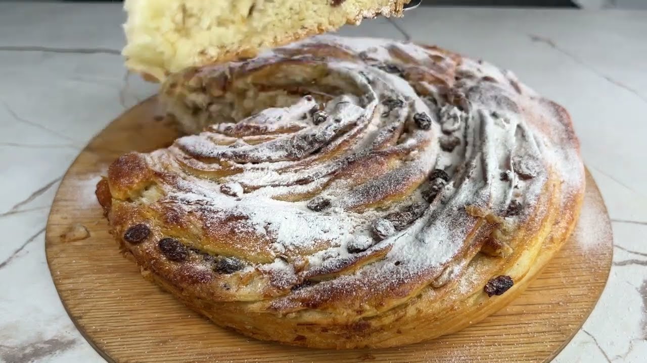 Il risultato? È quello che sta stupendo tutti. Un pane di Natale incredibilmente soffice, aromatico, con un cuore umido e ricco. Ogni fetta è un vortice di sapori: la dolcezza dell’uvetta, la croccantezza delle noci, l’aroma del limone e la ricchezza del burro. Non è un pane asciutto, non è un panettone complicato. È una via di mezzo perfetta, un dolce confortante che sa di festa.