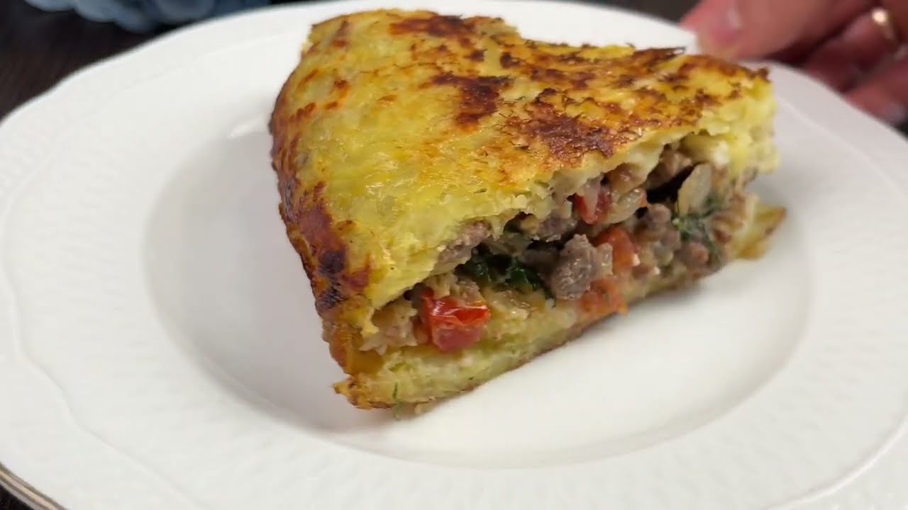 Il segreto sta nell’assemblaggio. La fonte recita “Metà del ripieno” e “Friggere ogni lato per 10-15 minuti”. L’interpretazione è chiara: si tratta di una “torta” a strati. Si mette metà del composto di patate in una padella calda e oliata, creando un disco. Si copre con l’intero strato di carne cruda, pomodori e mozzarella. Infine, si copre il tutto con la seconda metà del composto di patate, sigillando il ripieno all’interno.
