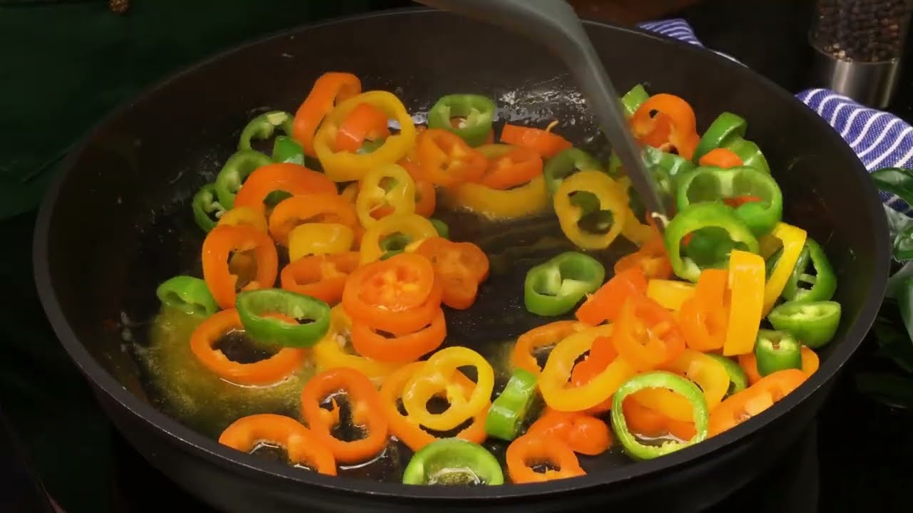 Saltare le Verdure: Sciogliete una noce di burro in una padella calda. Aggiungete i peperoncini e rosolateli.