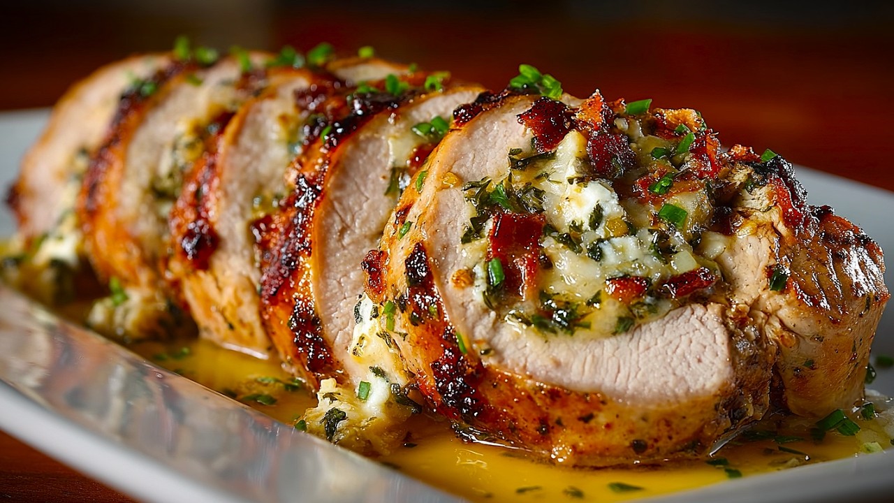 Infornate in forno preriscaldato tra i 180°C e i 200°C per 50-60 minuti. Durante questo tempo, accade la magia. La crosta esterna diventa croccante. Il grasso interno si scioglie, fondendosi con la carne. Il ripieno di formaggio cremoso diventa bollente e il maiale cuoce lentamente nel suo stesso sapore.