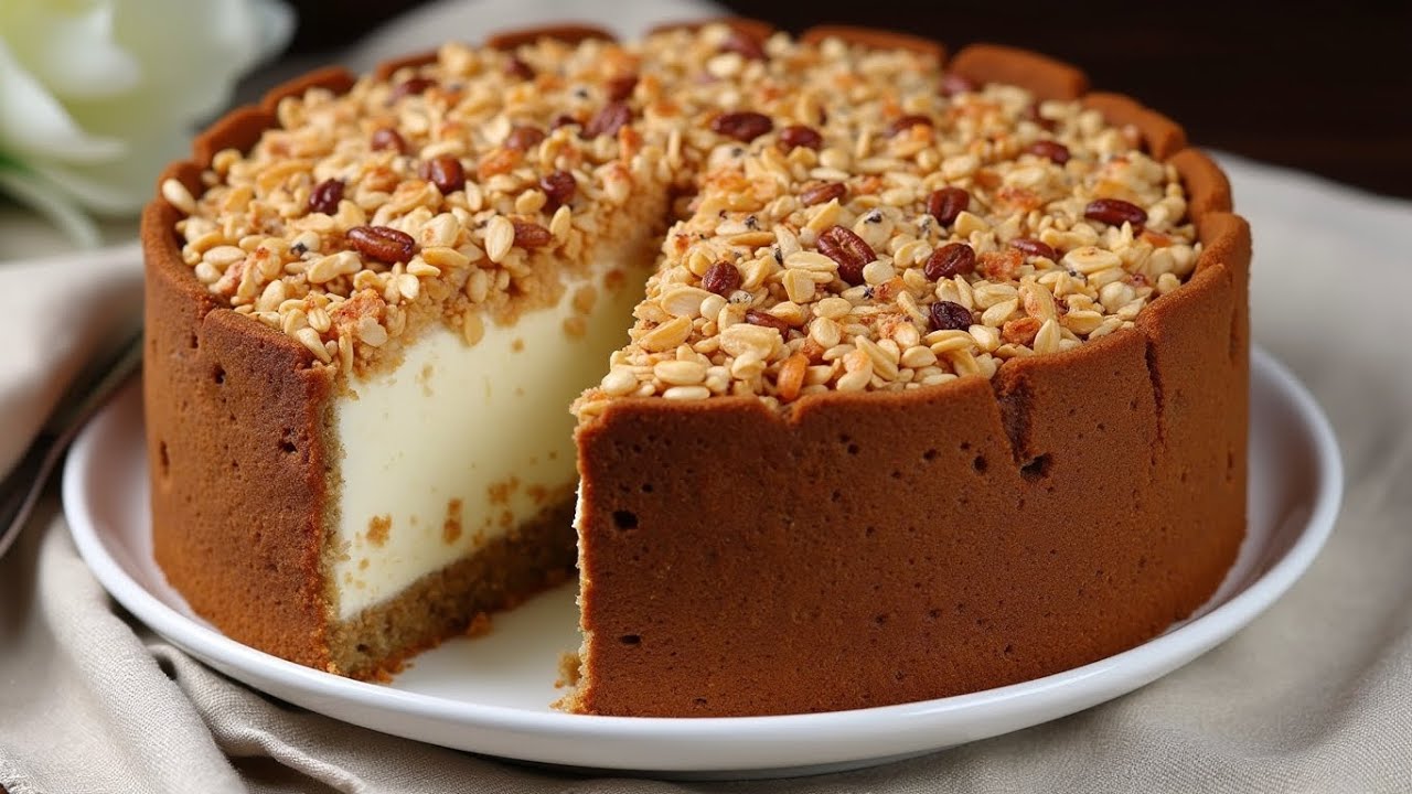 Ciò che rende questa ricetta straordinaria non è la velocità, ma la struttura. Non è una semplice torta di avena. È una cheesecake audacemente reimmaginata, una “torta ibrida” che combina tre consistenze distinte in un unico insieme.