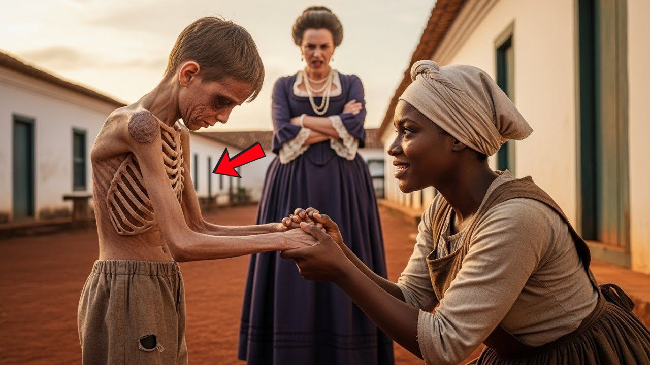 As marcas de chicote nas costas dos escravizados eram a prova viva disso, mas dentro daquela casa grande, um drama silencioso consumia a família. O pequeno Rafael, único filho e herdeiro de toda aquela fortuna, estava definhando. Tinha 5 anos, mas seu corpo parecia o de uma criança de três. Os ossos do peito saltavam por baixo da pele fina, os braços eram finos como gravetos e seus olhos grandes demais para o rosto afundado, pareciam dois buracos escuros.