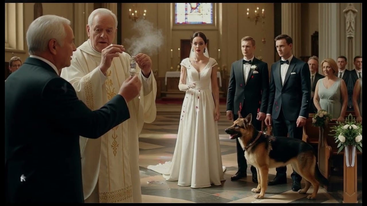 Un cri jaillit dans l’église. Le chien ne mordit pas — il agrippa le bas de la veste de Michael et tira violemment. Le tissu se déchira, laissant tomber un petit objet métallique qui roula jusqu’au milieu de l’allée.