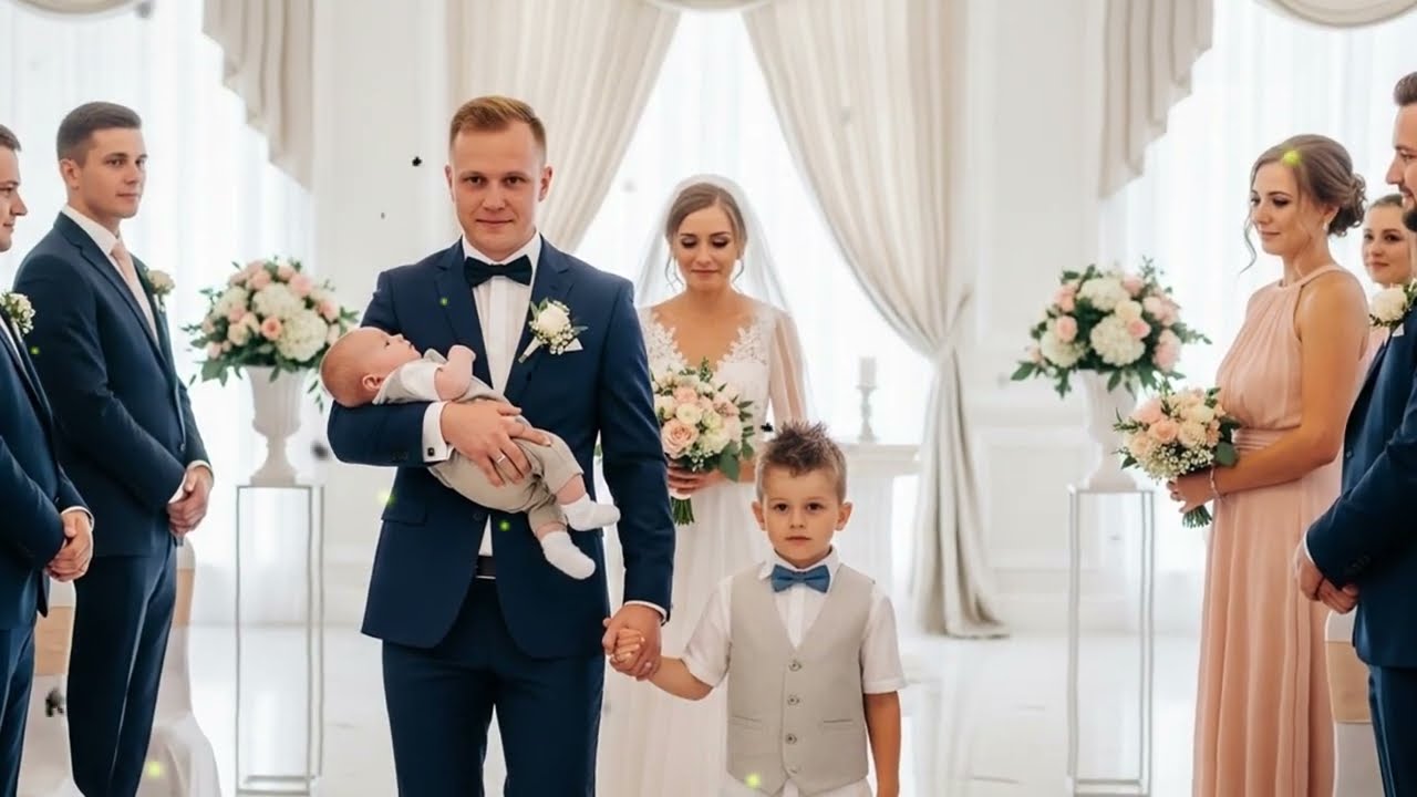 Mais ce n’était pas son intrusion qui fit taire l’assemblée. C’était le nouveau-né fragile qu’il portait dans son bras gauche, enveloppé dans une mince couverture claire. Sa main droite tremblait, mais restait ferme alors qu’il pointait du doigt le marié, debout à l’autel.